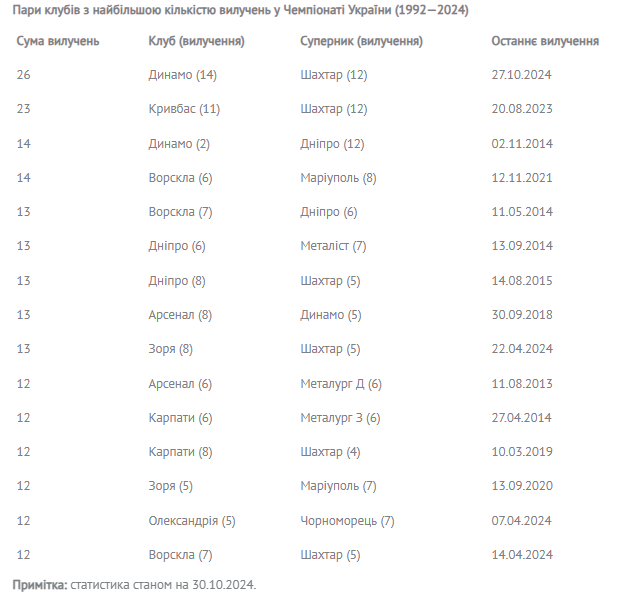 В 11-му турі в ході поєдинку «Динамо» та «Шахтаря» було показано червону картку півзахиснику донецького клубу Дмитру Криськіву. Загалом кількість вилучень в українському Чемпіонаті в поєдинках грандів «Шахтаря» та «Динамо» збільшилася до рекордного показника — 26: у донецького клубу — 12, київського — 14.