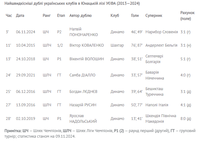 Пономаренко оформив дубль впродовж 3-х (!) хвилин і став автором найшвидкіснішого з усіх 16-ти дублів українських клубів в Юнацькій лізі УЄФА.