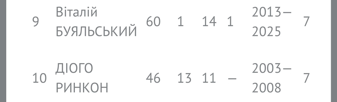 Відзначимо і Віталія Буяльського, який входить до десятки кращих бомбардирів «Динамо» в обох рейтингах.
