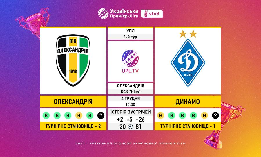 Матч 1-го туру VBET Української Прем’єр-Ліги «Олександрія» — «Динамо»: статистичне прев’ю.