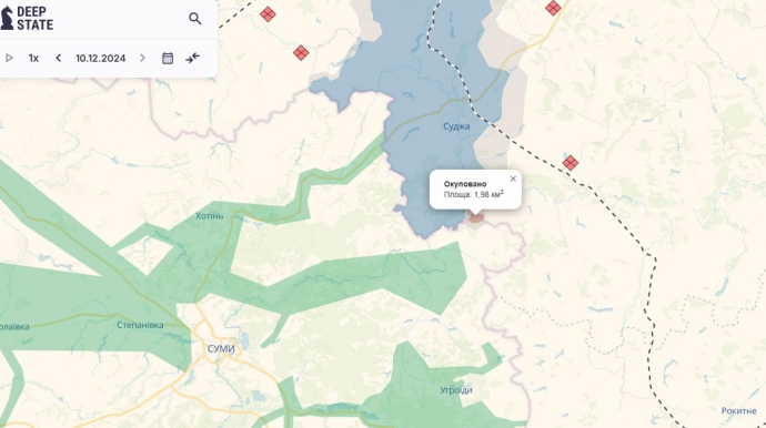 Деталі: Уночі 10 грудня DeepState повідомив про просування росіян на Донеччині і Сумщині. На карті DeepState вказано, що загарбники окупували 1,98 км2 на Сумщині, а також просунулись на території Курської області РФ.