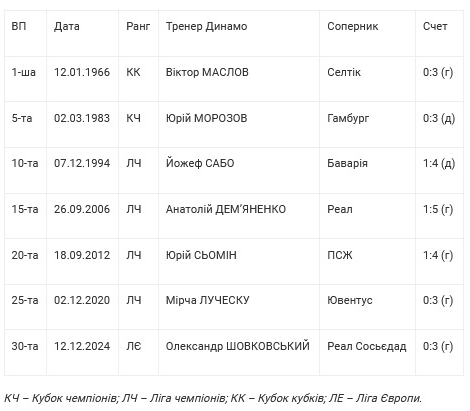 «Ювілейні» великі поразки Динамо у єврокубках