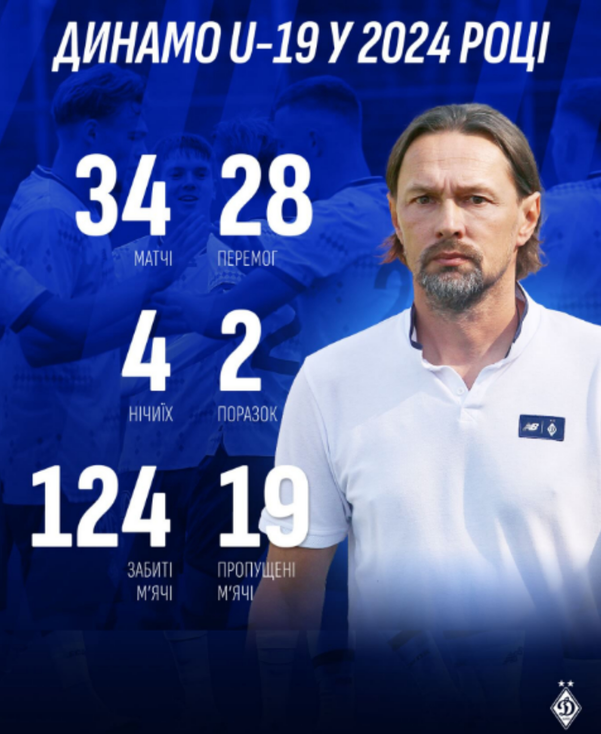 Цього календарного року команда "Динамо" серед гравців віком до 19 років провела 34 матчі.
