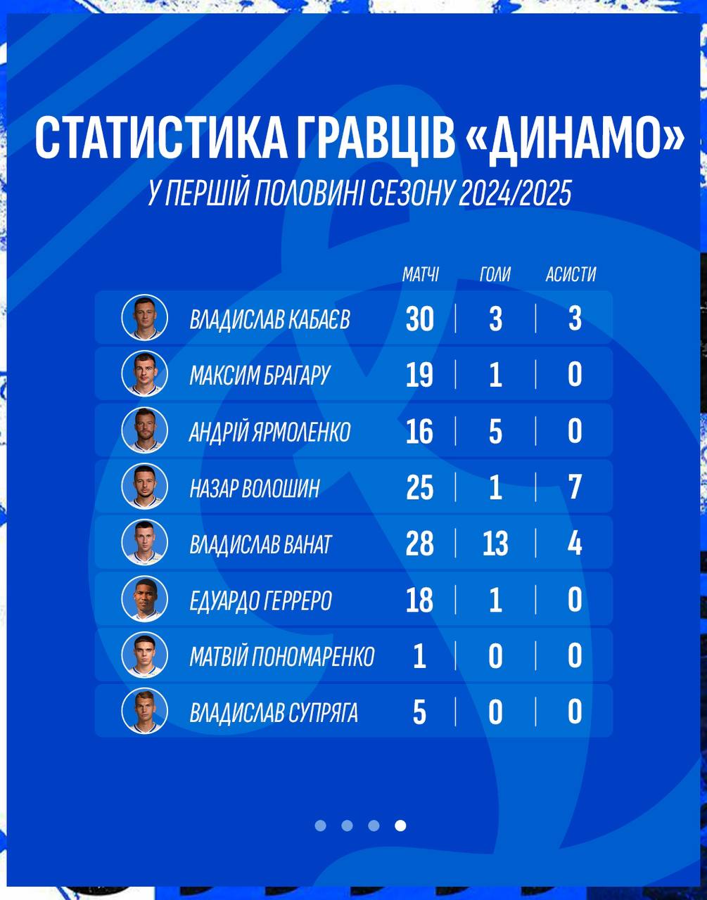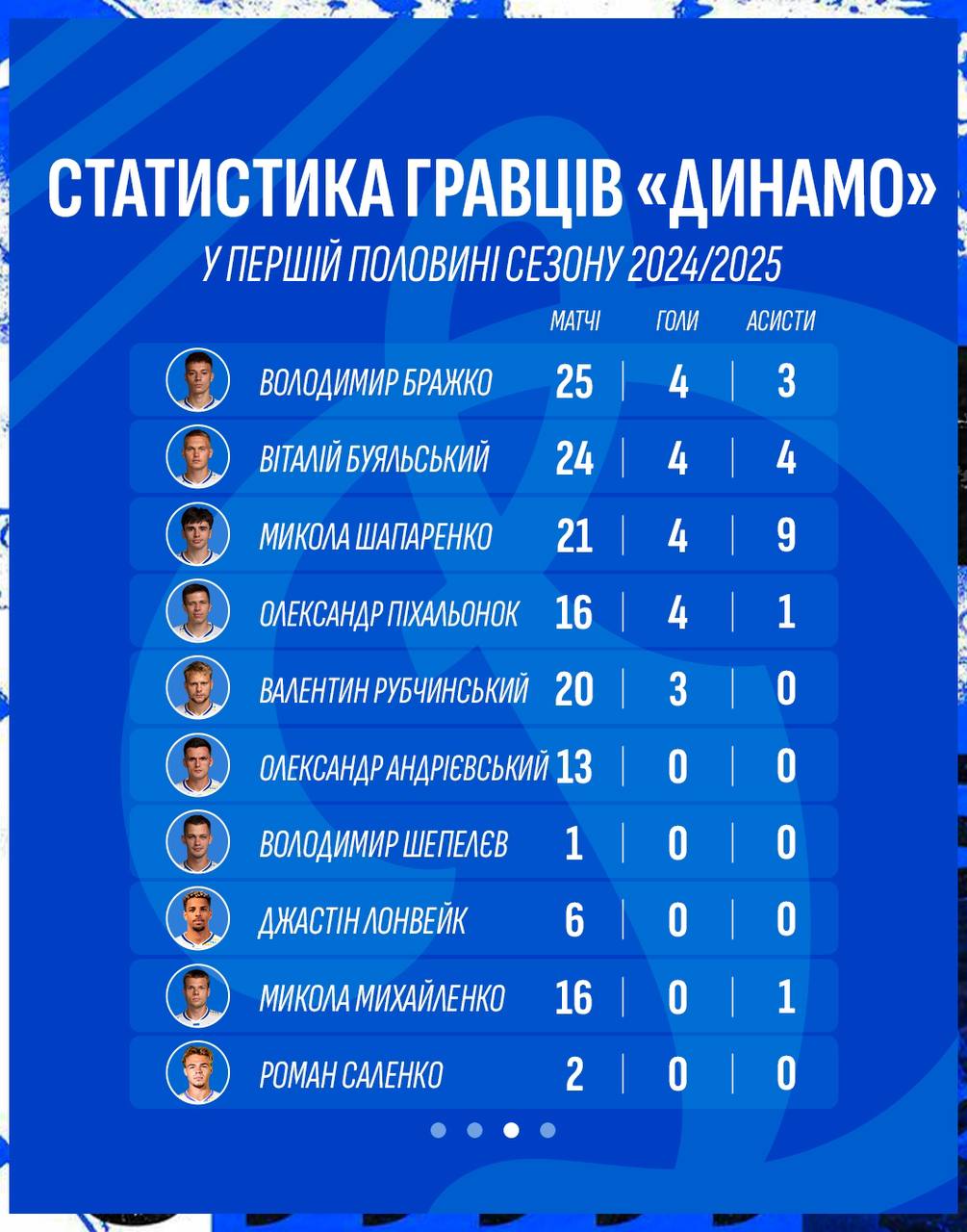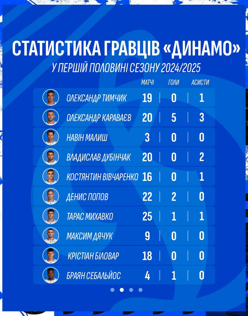 Пропонуємо до Вашої уваги статистичні дані щодо гравців "Динамо" в першій частині сезону 2024/25.