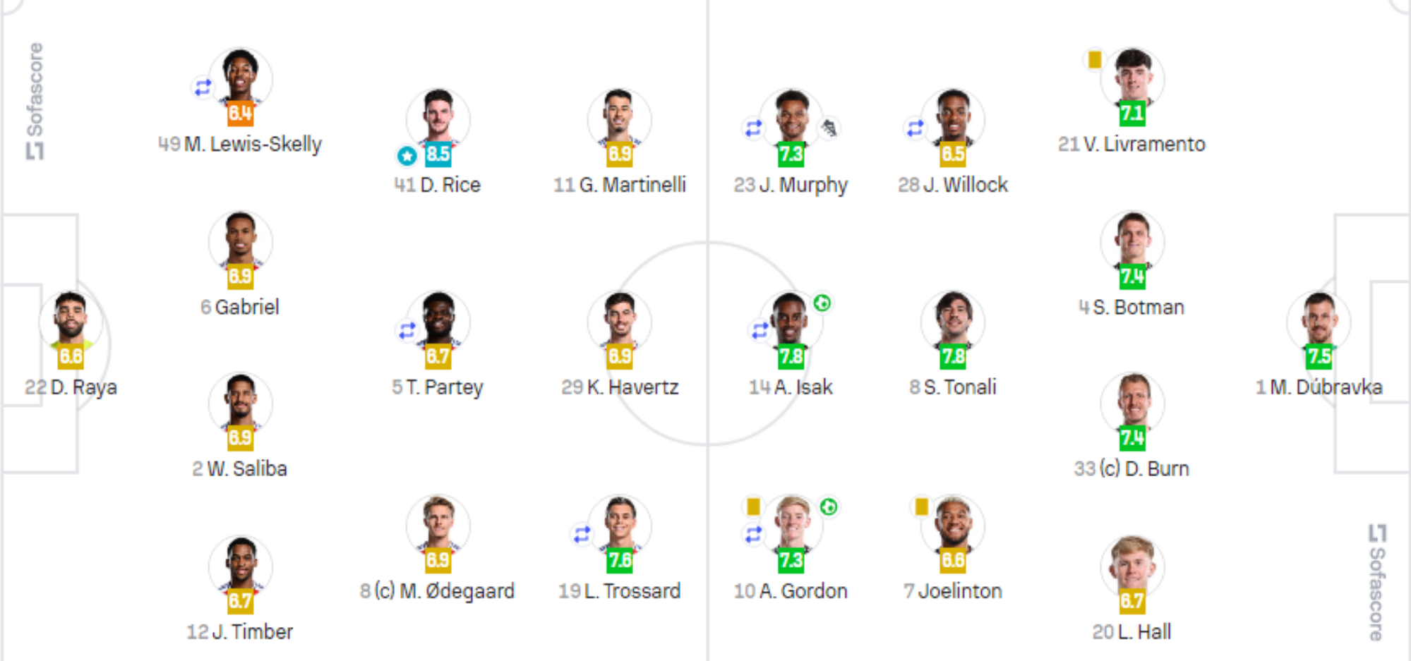 І попри те, що "Арсенал" програв "Ньюкаслу" з рахунком 0:2, українець отримав оцінку 7,0 від SofaScore.