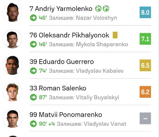 Статистичний портал SofaScore визнав вінгера "Динамо" Андрія Ярмоленка найкращим гравцем киян у матчі з "Галатасараєм".