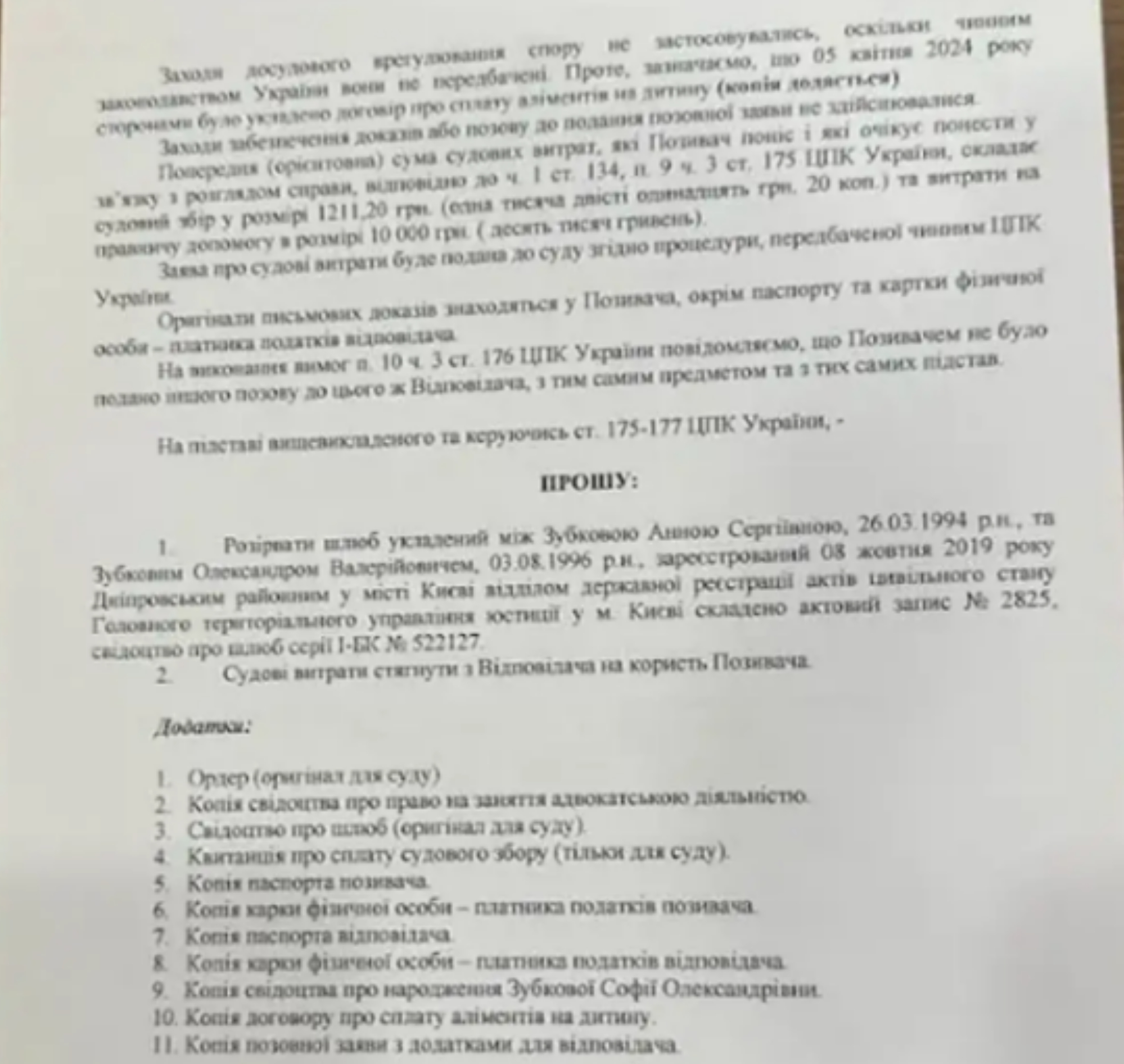 Його дружина Анна оприлюднила у власному інстаграмі фото заяви до суду щодо розлучення.