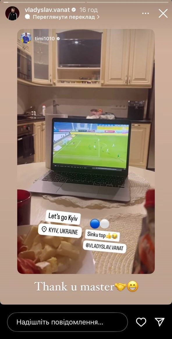Колишній форвард "Динамо" Артем Мілевський написав в інстаграмі: "Синку, топ" і тегнув Ваната.