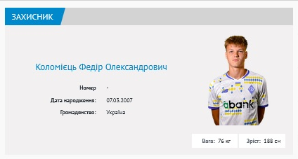 ”Динамо” виключило із заявки на сезон Прем'єр-ліги 2024/25 захисника Федора Коломійця.