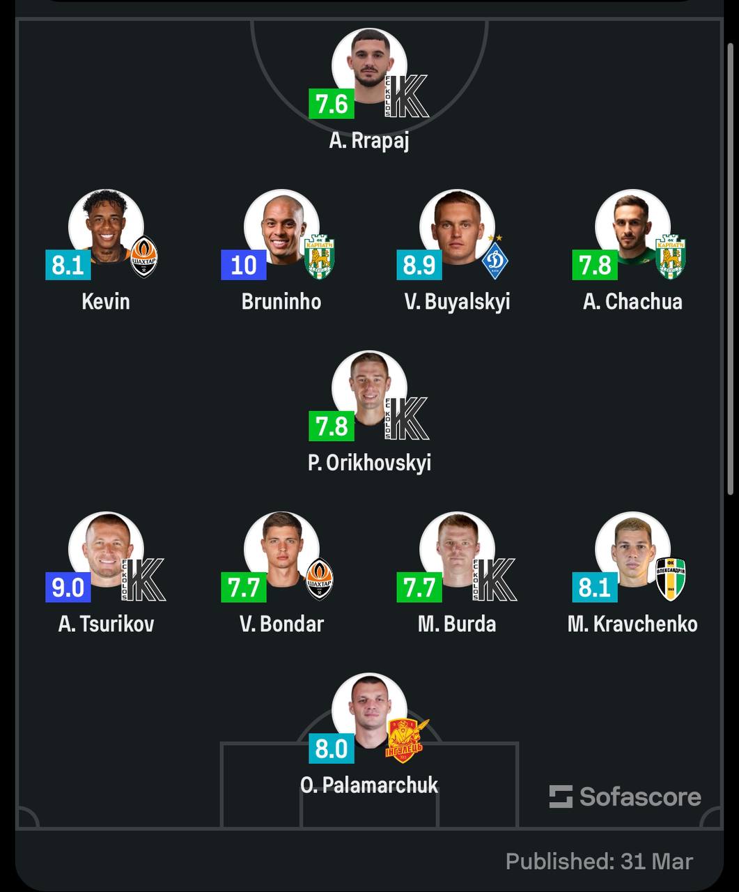 Лише Віталій Буяльський представляє "Динамо" в символічній збірній 22-го туру УПЛ від SofaScore.