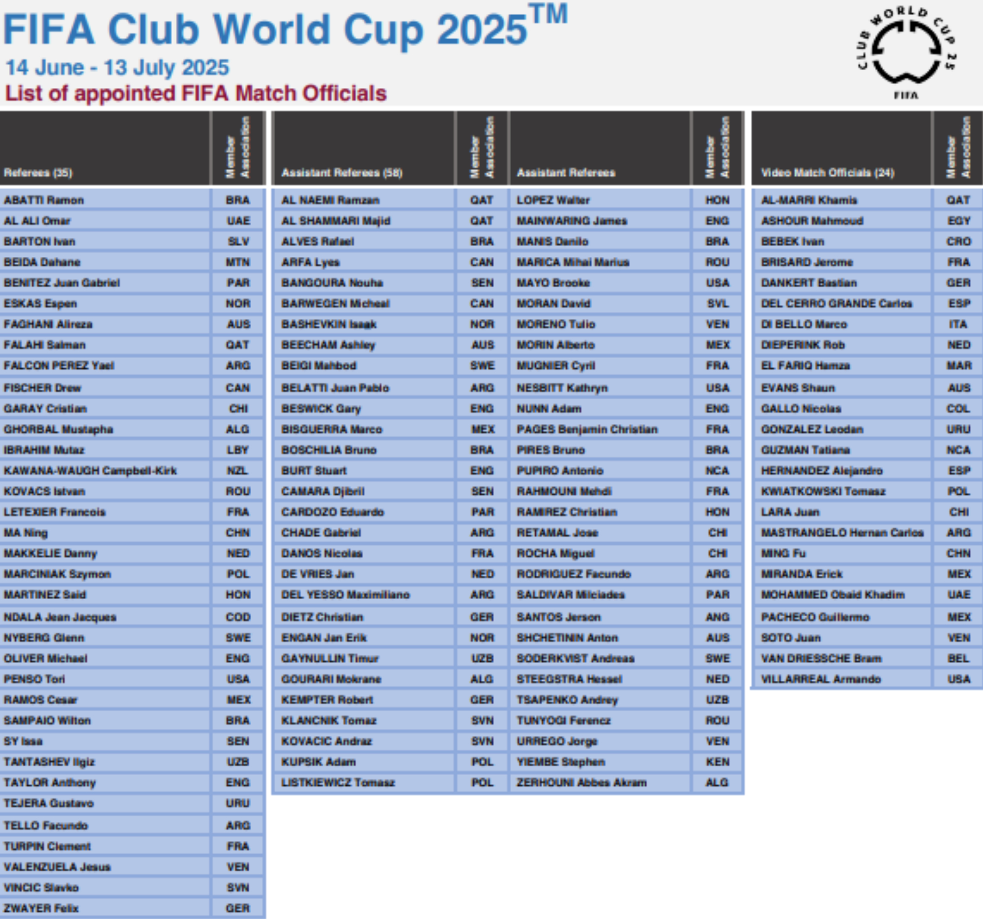ФІФА вже затвердила список усіх арбітрів, котрі працюватимуть на цьому турнірі. Там немає українців, зате є представники Узбекистану, Алжиру, Кенії та Венесуели.