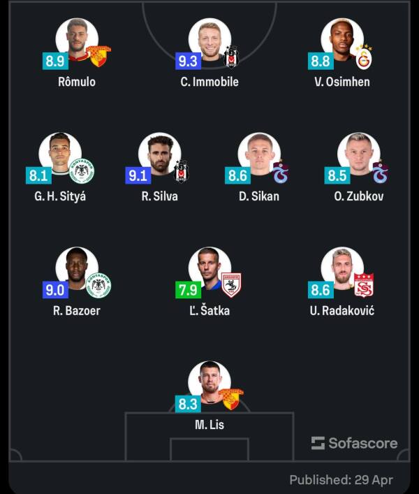 Українські легіонери турецького "Трабзонспора" Олександр Зубков та Данило Сікан за підсумками 33-го туру турецької Суперліги та потрапили до символічної збірної туру за версією авторитетного статистичного порталу Sofascore.