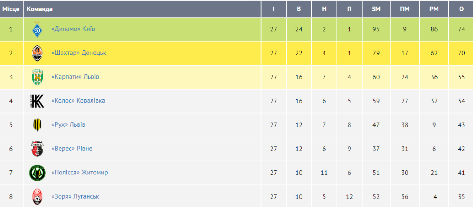 "Динамо" тримає "Шахтар" на відстані. Турнірна таблиця першості U-19 після 27-го туру