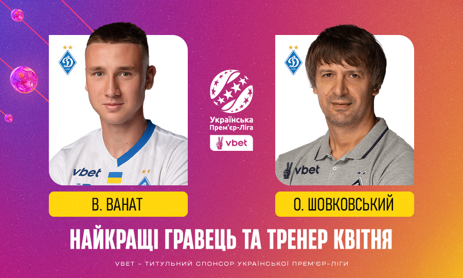 Найкращим гравцем квітня VBET Української Прем’єр-Ліги визнано форварда «Динамо» Владислава Ваната, який відзначився трьома голами у чотирьох матчах