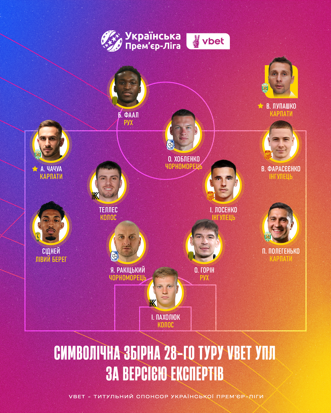 Експерти визначили найкращого тренера, гравця та символічну збірну 28-го туру УПЛ