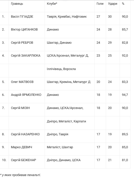 Найкращі бомбардири-пенальтисти чемпіонатів України