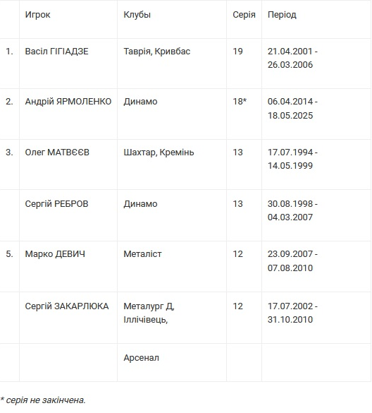 Найтриваліші серії реалізованих пенальті в чемпіонатах України