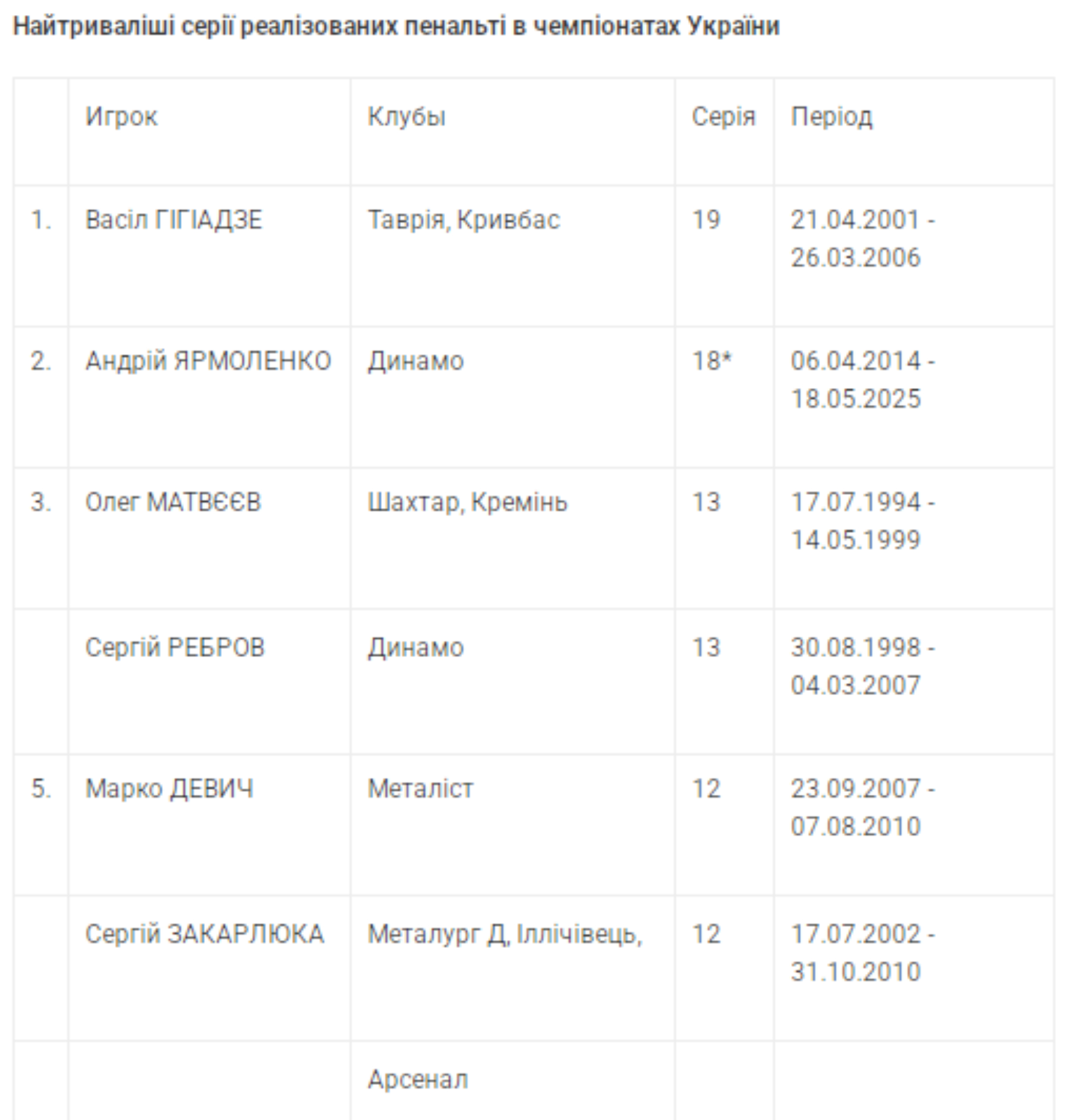 До слова, Ярмоленко, який за кар'єру забив в УПЛ з одинадцятиметрової позначки 18 м'ячів, вийшов на шосте місце у списку найкращих бомбардирів-пенальтистів чемпіонатів України. А результативна серія Андрія з 18-ти точних ударів поспіль поступається лише рекорду УПЛ Васила Гігіадзе.