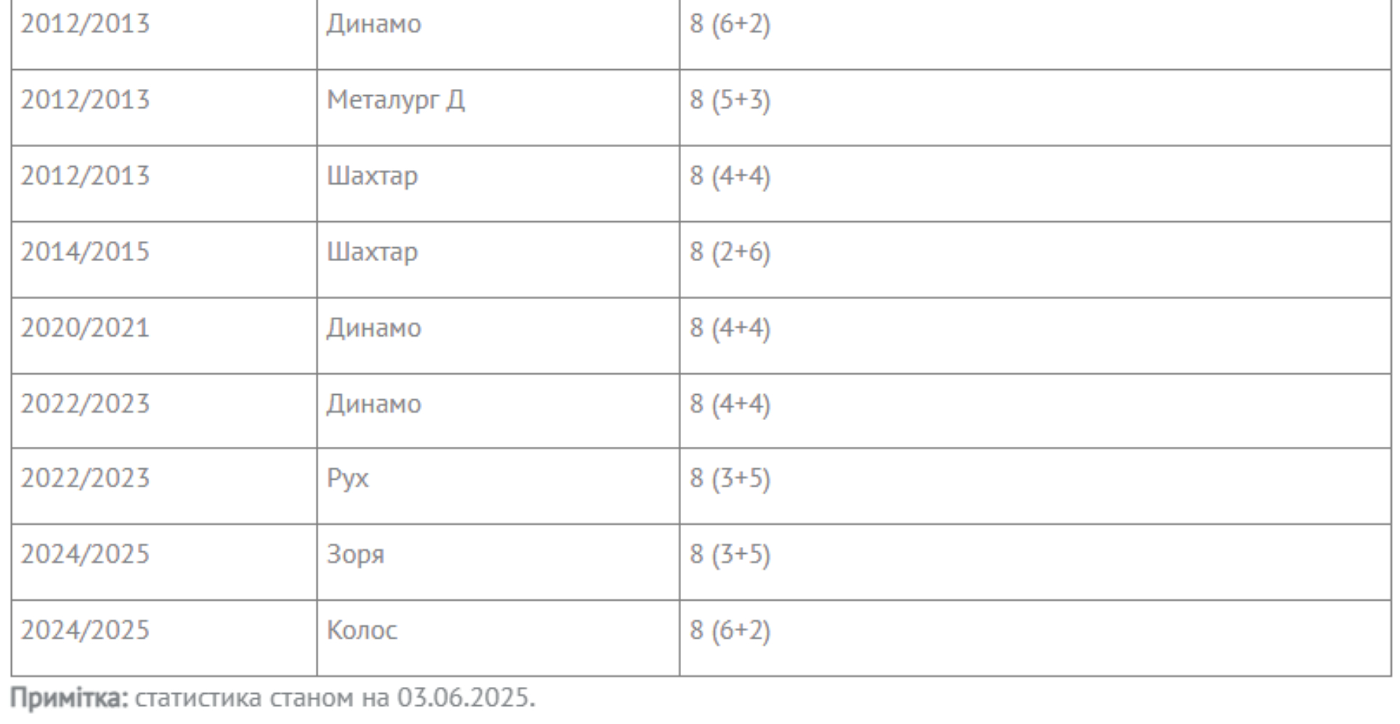 А юнаки "Карпат" оформили 9 дублів. Підняли планки клубних рекордів юнаки "Зорі" (8 дублів), "Колоса" (8) та "Полісся" (7).