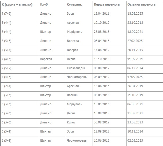 Примітка: К — кількість перемог; статистика станом на 30.06.2025.
