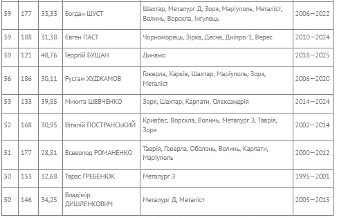 У сезоні 2025/26 також може провести 50-й «сухий матч» Дмитро Різник з «Шахтаря» (наразі 46).