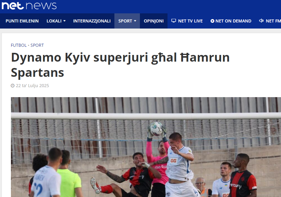 "Динамо" вже у третьому раунді". Мальтійські ЗМІ – про матч із "Хамрун Спартанс"