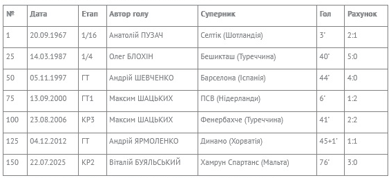 Ювілейні гостьові голи «Динамо» у Лізі/Кубку чемпіонів