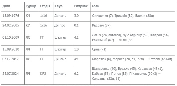 А от із сербськими командами наші клуби зустрічалися 10 разів і виграли 90% дуелей. Поразка за сумою двох матчів була лише одна — 20 років тому, в лютому 2005-го «Дніпро» не впорався із «Партизаном». В усіх інших випадках серби програвали представнику України.