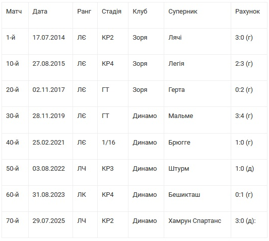 Між тим поєдинок із мальтійцями виявився ювілейним ще для двох динамівців. Владислав Ванат провів 30-й матч у єврокубках (ЛЧ – 14, ЛЄ – 13, ЛК – 3), а Владислав Супряга – 20-й (ЛЧ – 16, ЛЄ – 4).