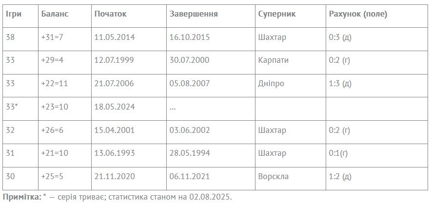 Найдовші безпрограшні серії «Динамо» в Чемпіонаті України