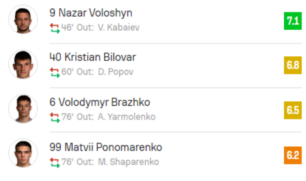 Найкращим гравцем поєдинку став форвард киян Владислав Ванат (7,5), неподалік розташувалися Олександр Піхальонок (7,4) і Тарас Михавко (7,3).