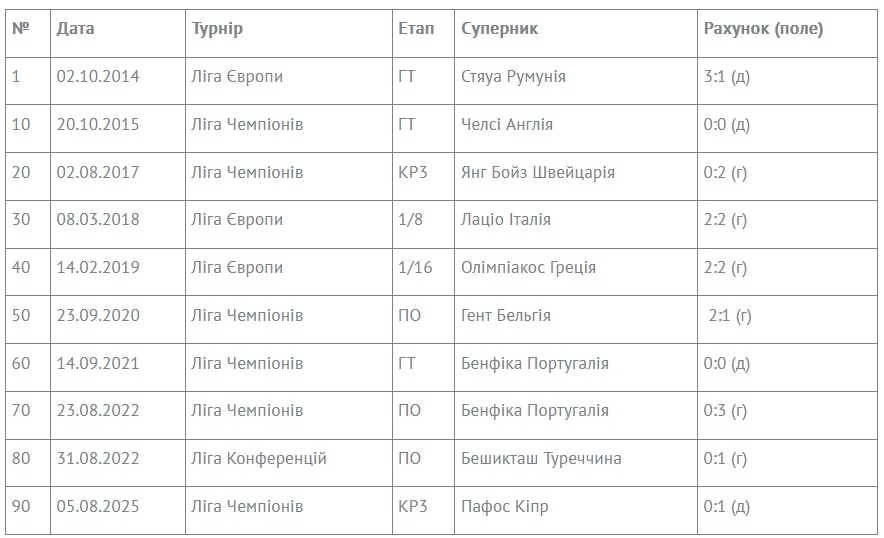 Ювілейні єврокубкові матчі Віталія Буяльського