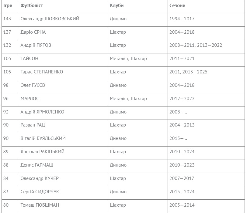 Ще один ветеран «Динамо» Віталій Буяльський провів ювілейний 90-й матч у єврокубкових турнірах. За цим показником він розділяє 9—10 місця в рейтингу гвардійців українських клубів з Разваном Рацом.
