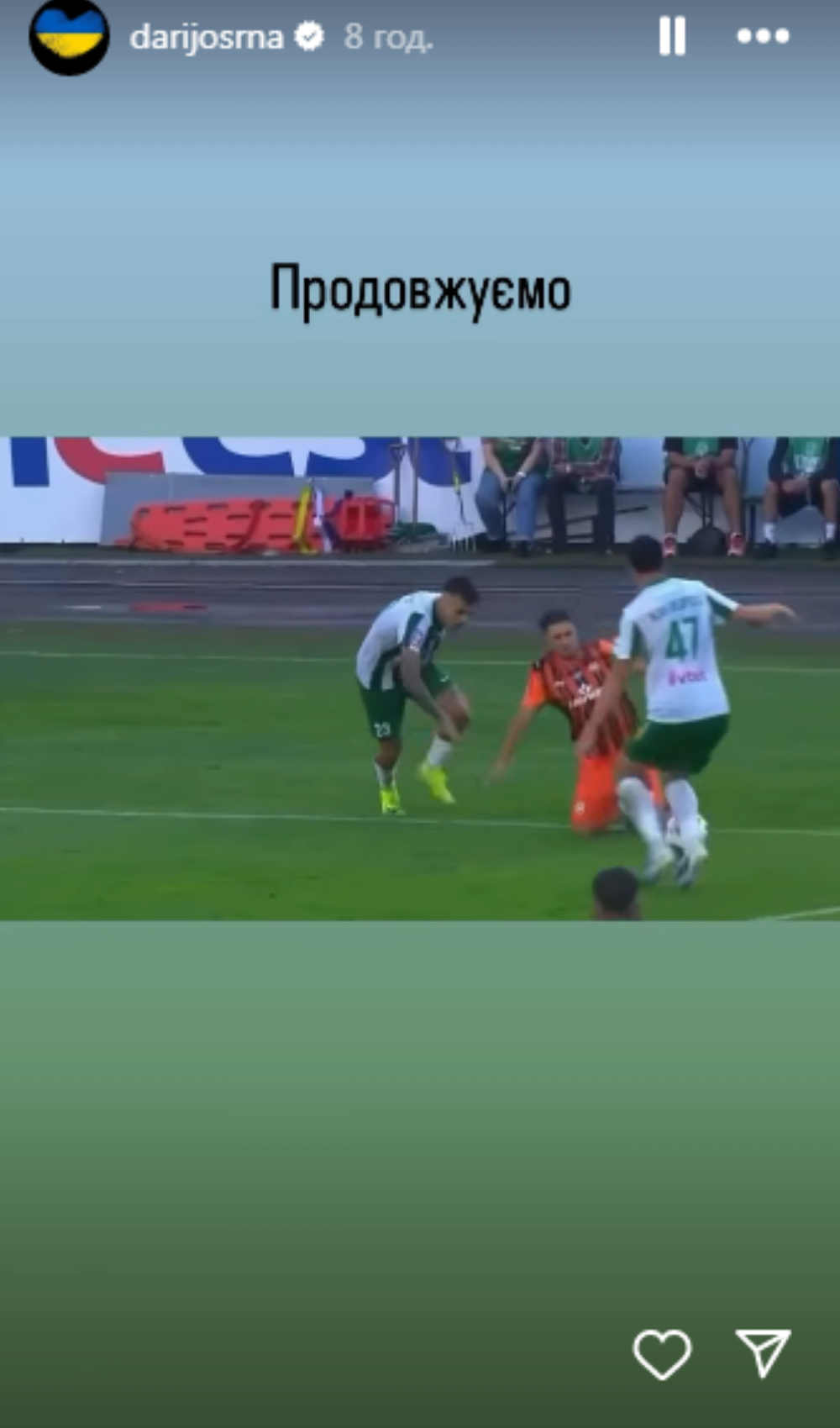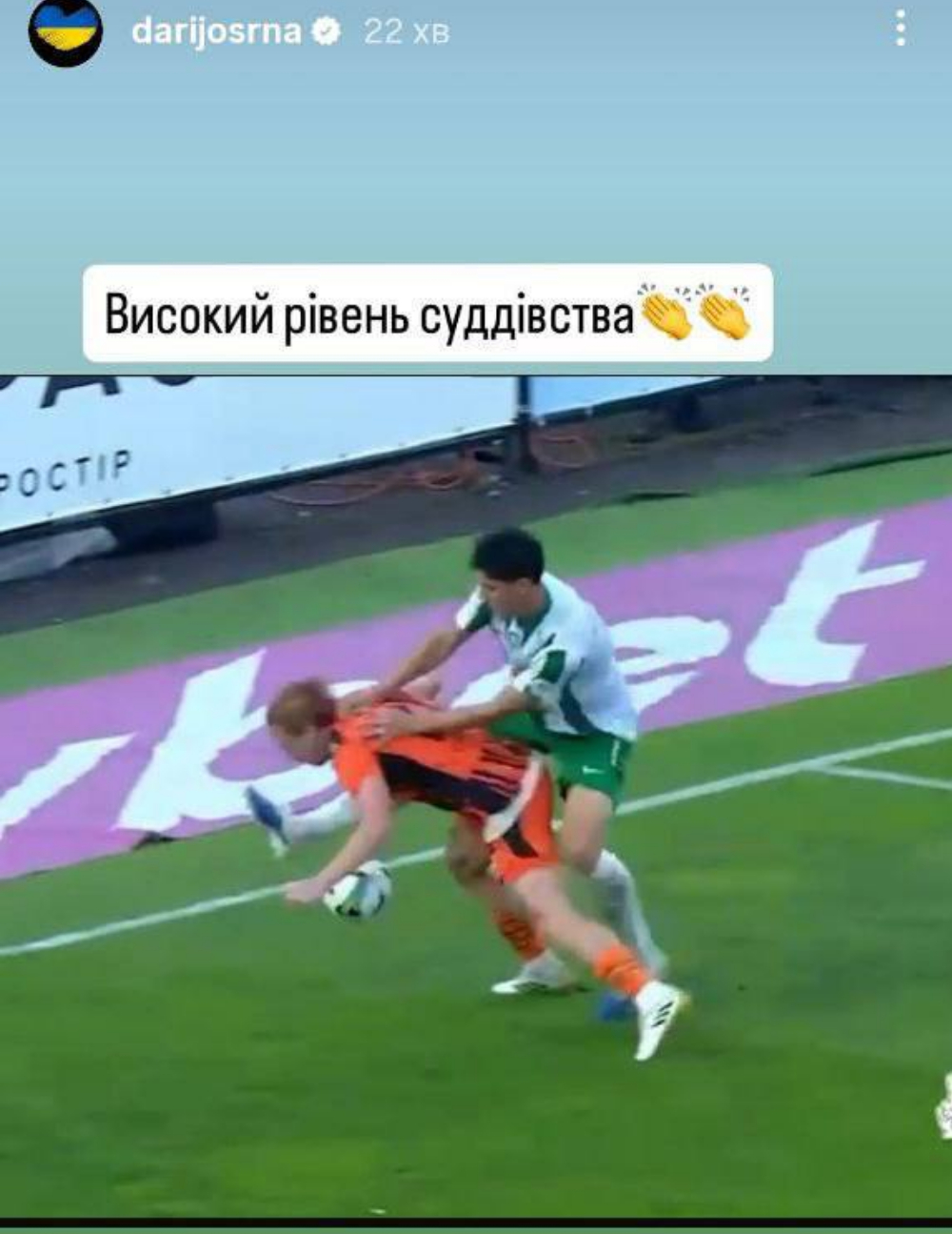 Срна спершу показав епізод з падінням Юхима Коноплі в штрафному майданчику "Карпат" і підписав: "Високий рівень суддівства". Потім він додав ще один епізод і написав: "Продовжуємо".