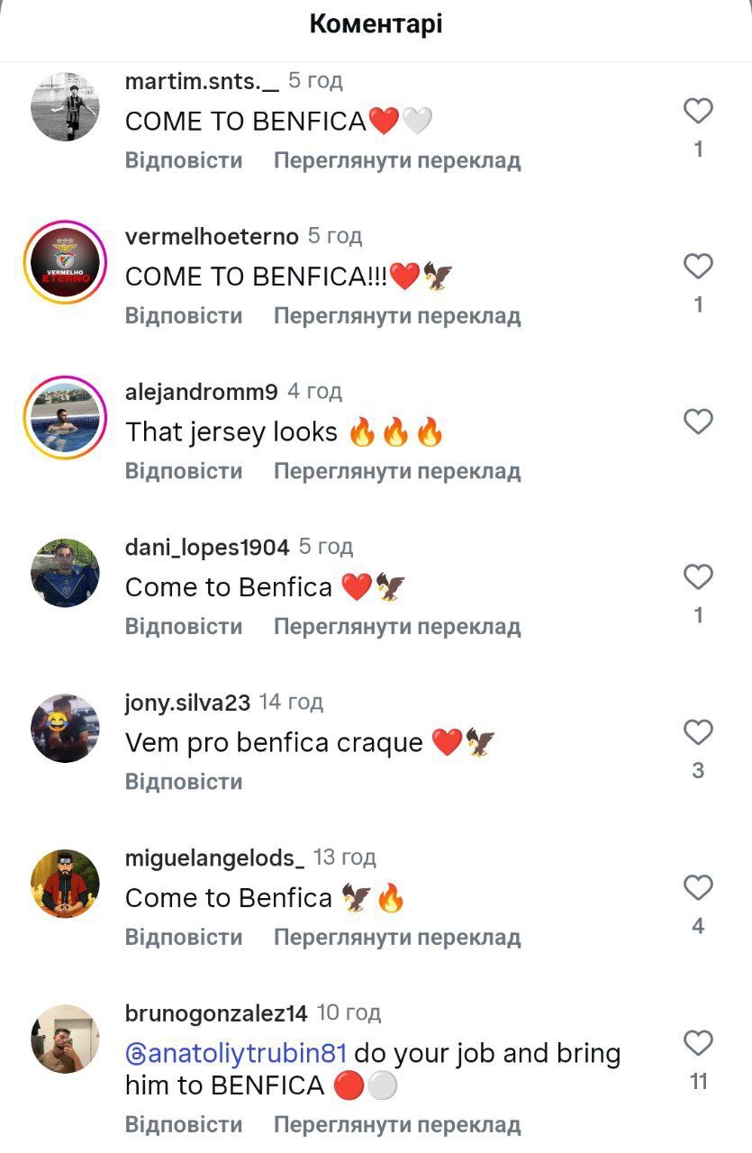 Проте повз одну деталь пройти неможливо: фанати "Бенфіки" буквально заполонили коментарі під цим дописом, закликаючи півзахисника приєднатися до їхнього клубу. Зараз активно циркулюють чутки про зацікавленість португальців у трансфері гравця збірної України. За повідомленнями ЗМІ, "гірники" вимагають близько 40 мільйонів євро.