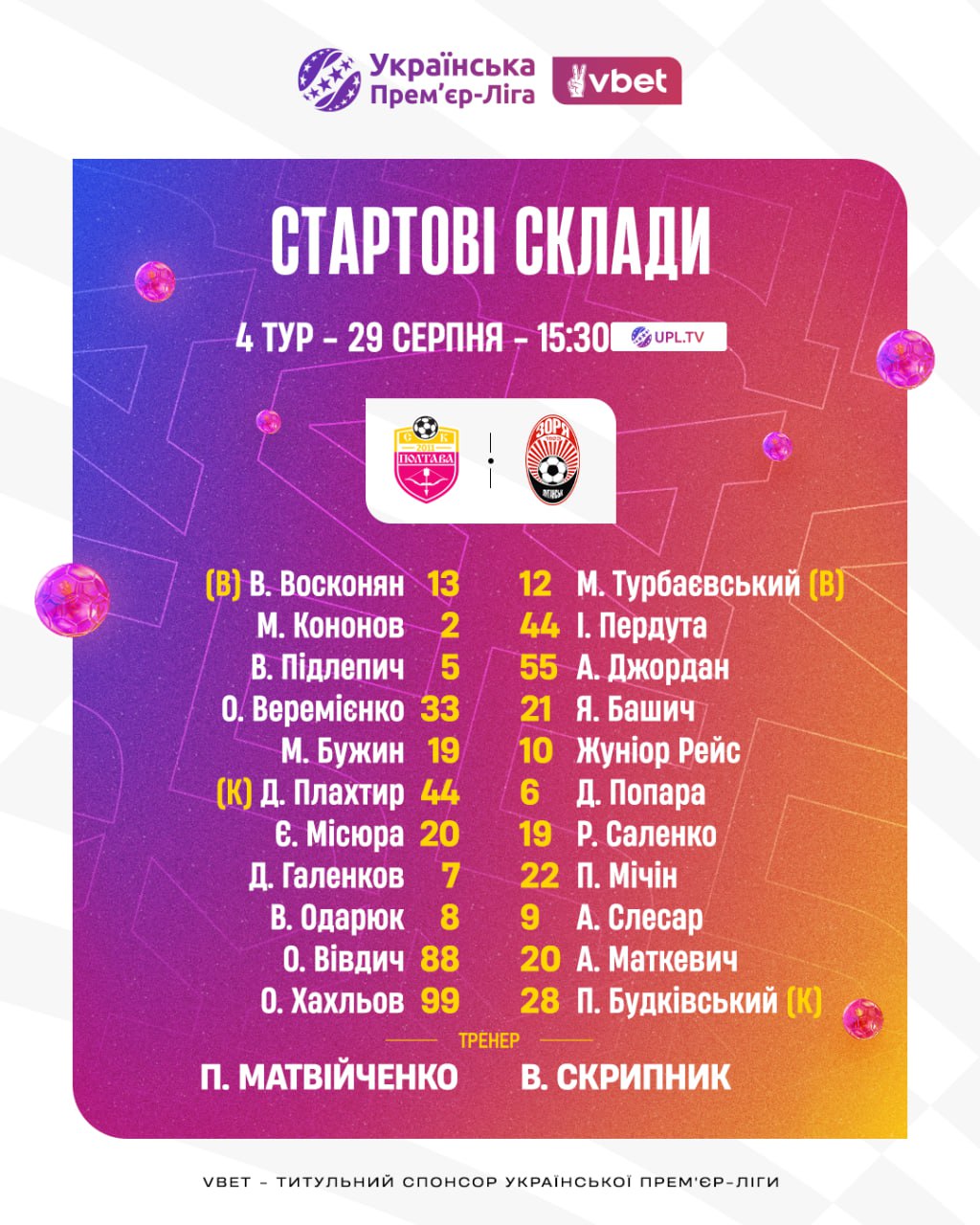Динамівці Саленко та Маткевич потрапили в основу "Зорі" на матч УПЛ проти "Полтави"
