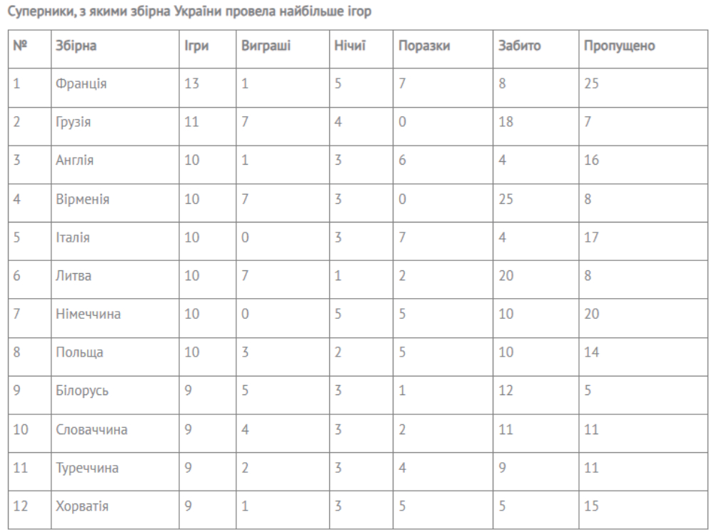 Збірна Франції закріпилася на першому місці серед усіх суперників нашої національної команди