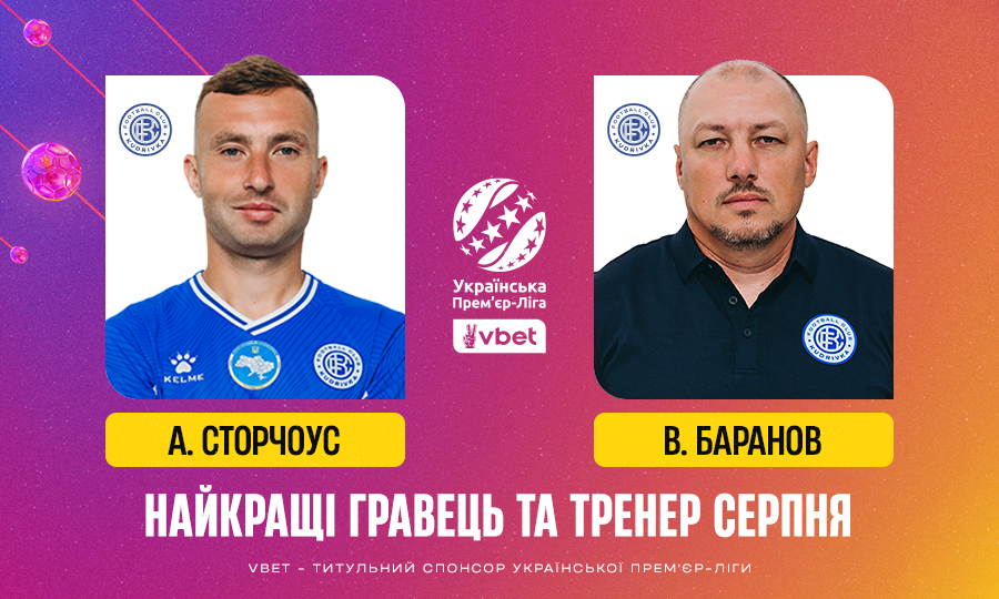 Найкращим гравцем серпня VBET Української Прем’єр-Ліги визнано півзахисника сенсаційної "Кудрівки" Андрія Сторчоуса, який взяв участь у трьох матчах УПЛ з чотирьох та відзначився трьома голами та одним асистом. А вони допомогли покласти на лопатки "Олександрію" (3:1, два голи) та здобути нічию з "Карпатами" (2:2, гол та асист).