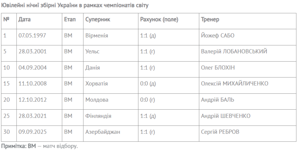 Нічия у Баку проти команди Азербайджану в рамках відбору на чемпіонат світу 2026 року стала для національної збірної України 30-ю в рамках відборів та фінальних частин ЧС.