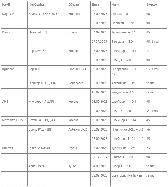 Вісім легіонерів з шести клубів УПЛ зіграли за збірні своїх країн у вересні