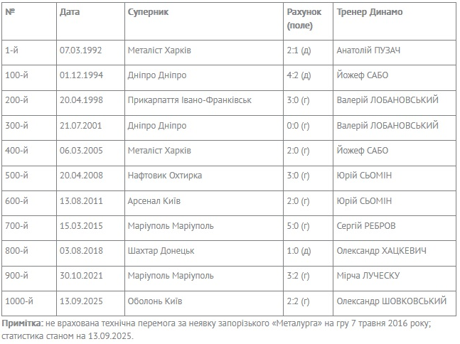 Ювілейні матчі «Динамо» в Чемпіонаті України