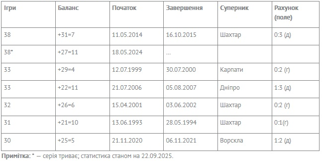 Найдовші безпрограшні серії «Динамо» в Чемпіонаті України