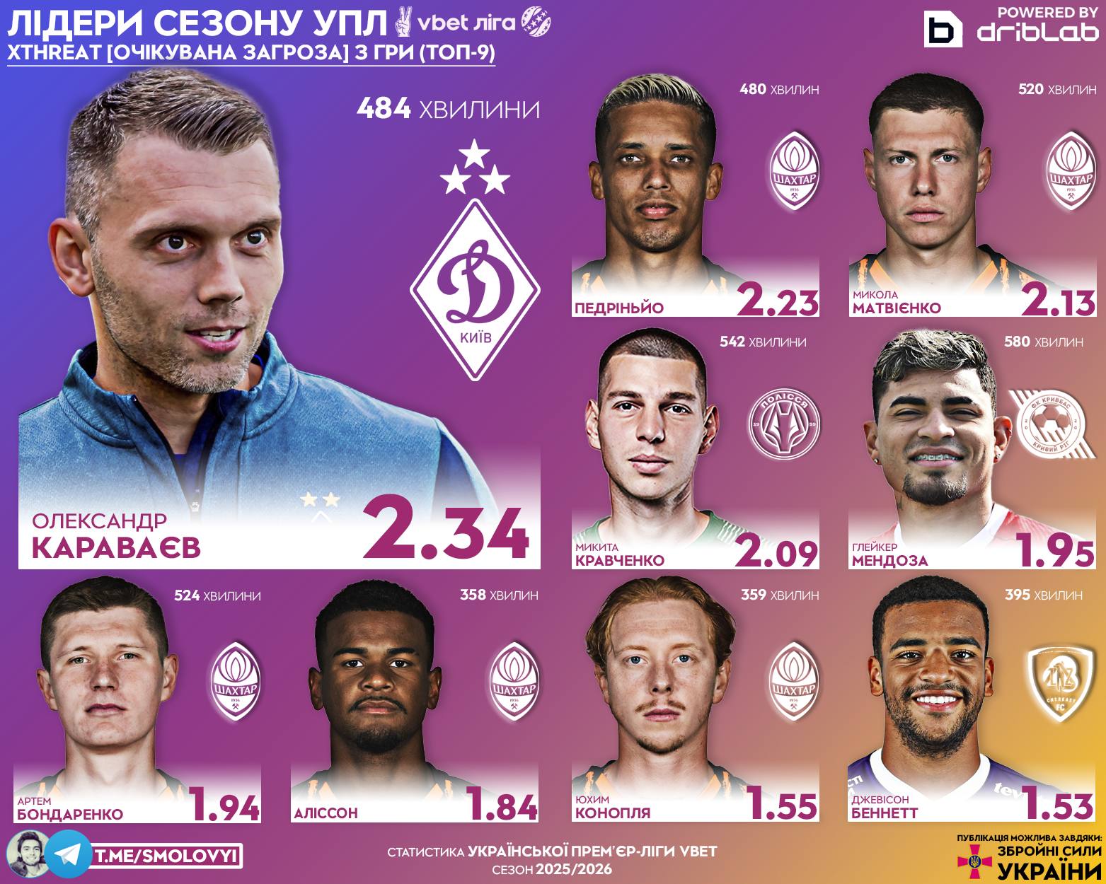 Футбольний блогер Михайло Смоловий проаналізував лідерів цього сезону УПЛ за xThreat (очікуваними загрозами) з гри.