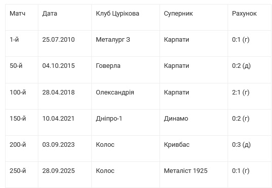 Матч із «Металістом 1925» (0:1) став 250-м для 32-річного захисника ковалівців Андрія Цурікова у чемпіонатах України. 112 зустрічей він відіграв в УПЛ за «Олександрію», 56 - за «Колос», 35 – за запорізький «Металург», 26 – за «Дніпро-1», 15 – за «Говерлу» та 6 – за «Динамо».