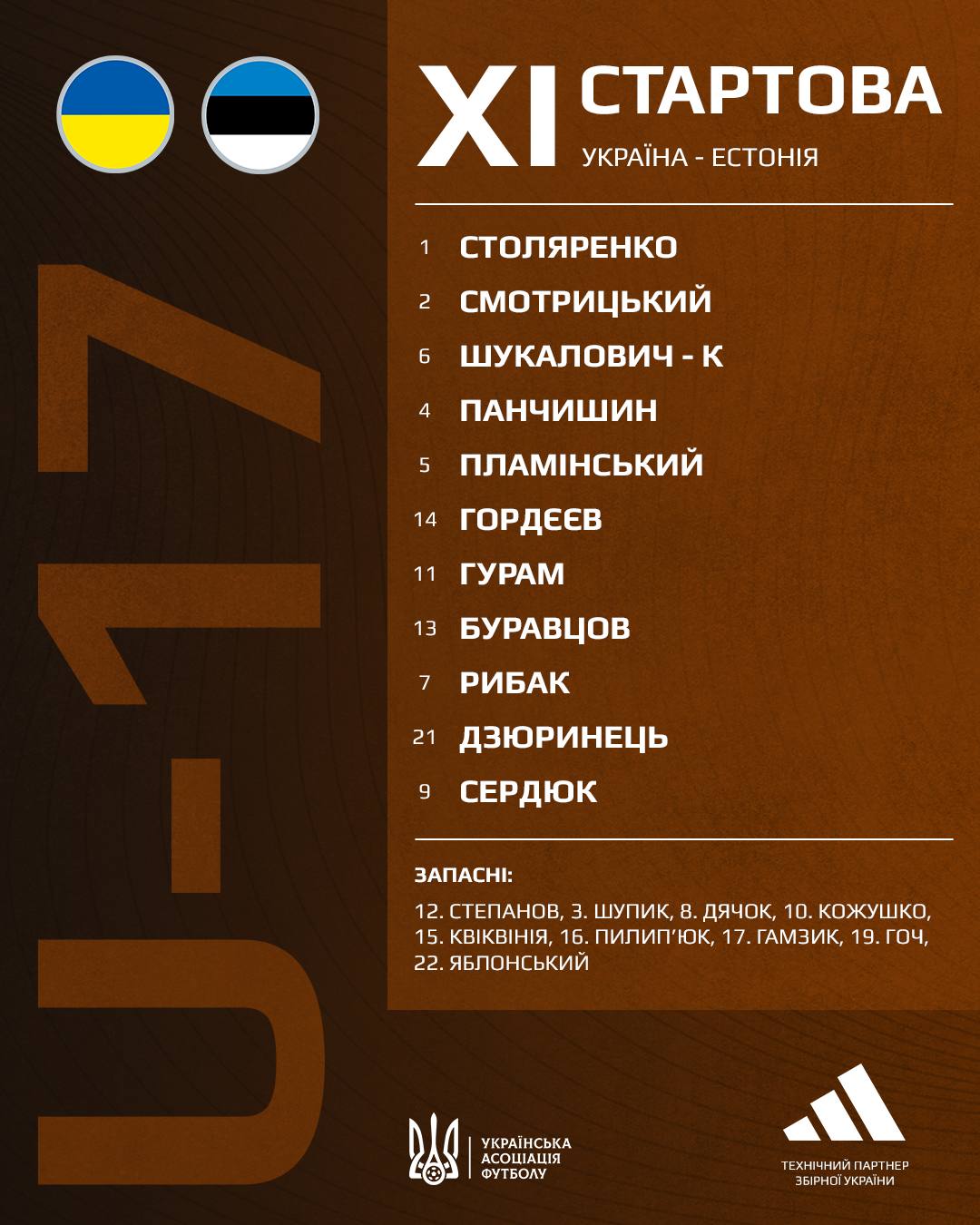 Динамівець Ярослав Буравцов вийде у стартовому складі збірної України U-17 в матчі проти Естонії у відборі ЄВРО-2026