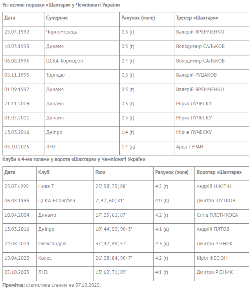 Загалом "помаранчево-чорні" після понад 9-річної перерви вже 9-й раз поступалися суперникам з різницею не менше трьох голів, в тому числі вперше ЛНЗ.