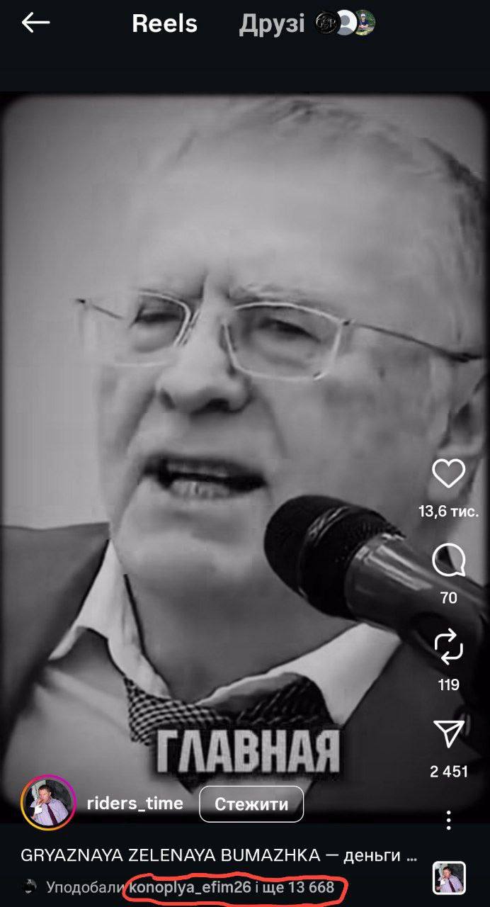 Зокрема, він поставив лайк під відео з російським політиком Володимиром Жириновським, котрий був відомий своїм максимально негативним ставленням до України.