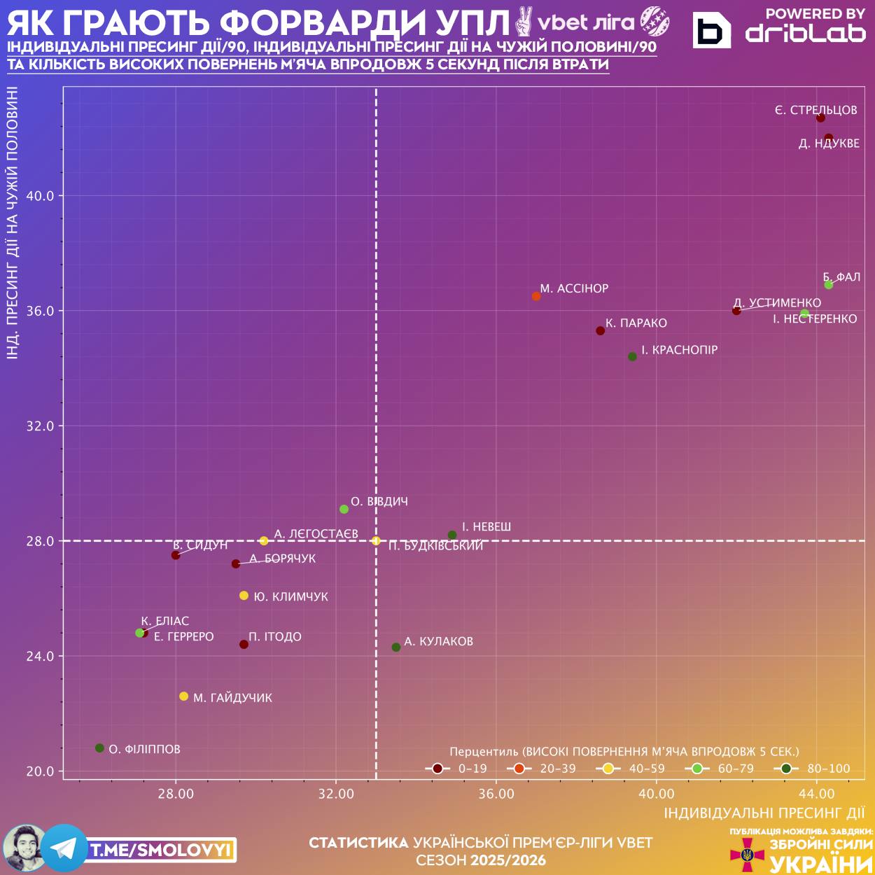 Цікаво порівнювати обсяги нападників із командами з ідентичним відсотком володіння або партнерів по команді. От, наприклад, Ігор Краснопір працює більше без м’яча, ніж Ігор Невеш. Якщо Краснопір у групі лідерів, то Невеш - у групі середнячків.