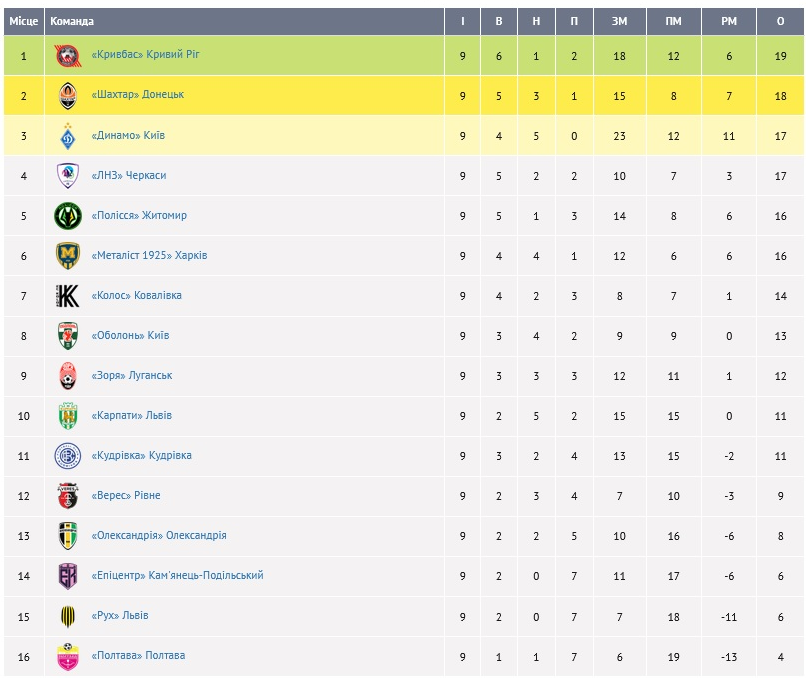 Пропонуємо до Вашої уваги турнірну таблицю УПЛ після 9-го туру.
