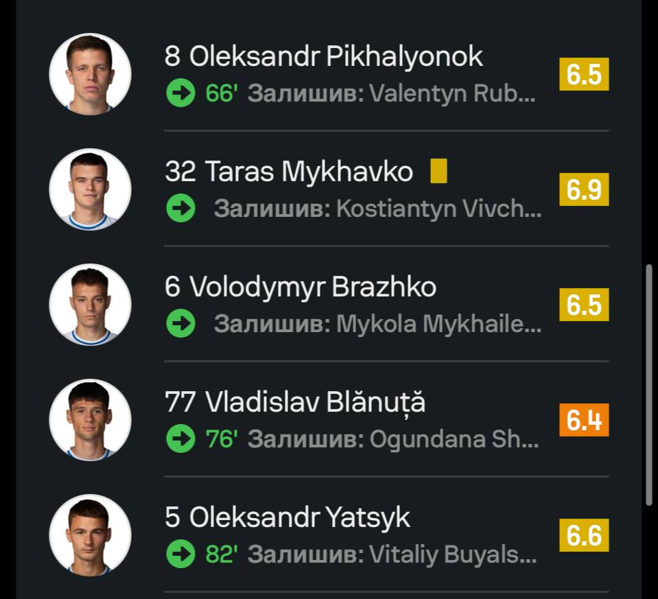 А найкращим серед киян вважають Тараса Михавка (6,9).